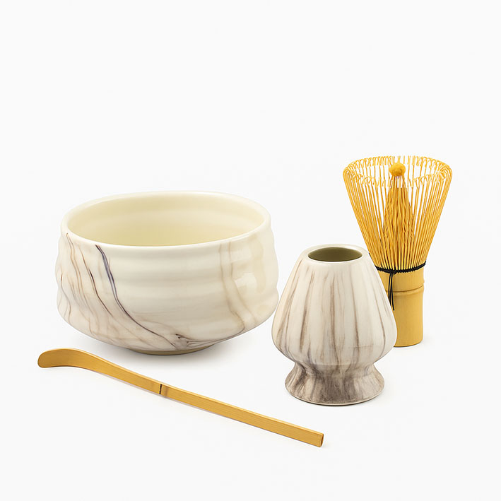 - کاسه ماچا (چاون): لعابدار، با اندازه استاندارد و مناسب برای هم زدن